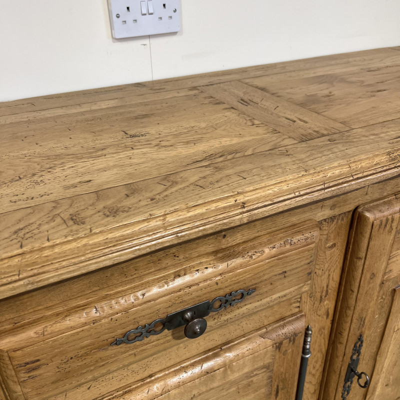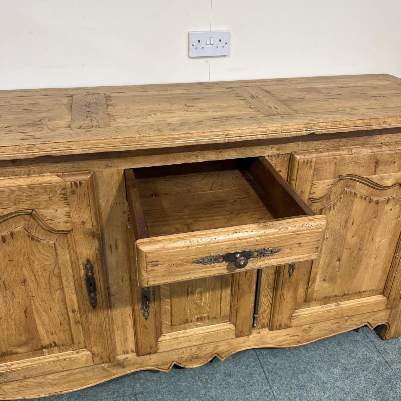 This extra large, French distressed, solid oak sideboard is about as far up in quality as you can go.