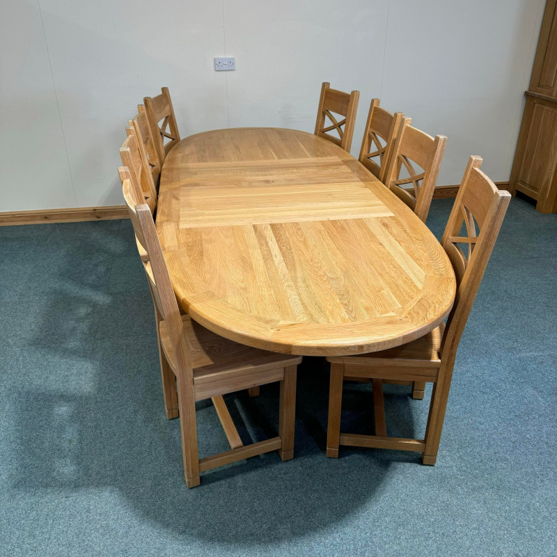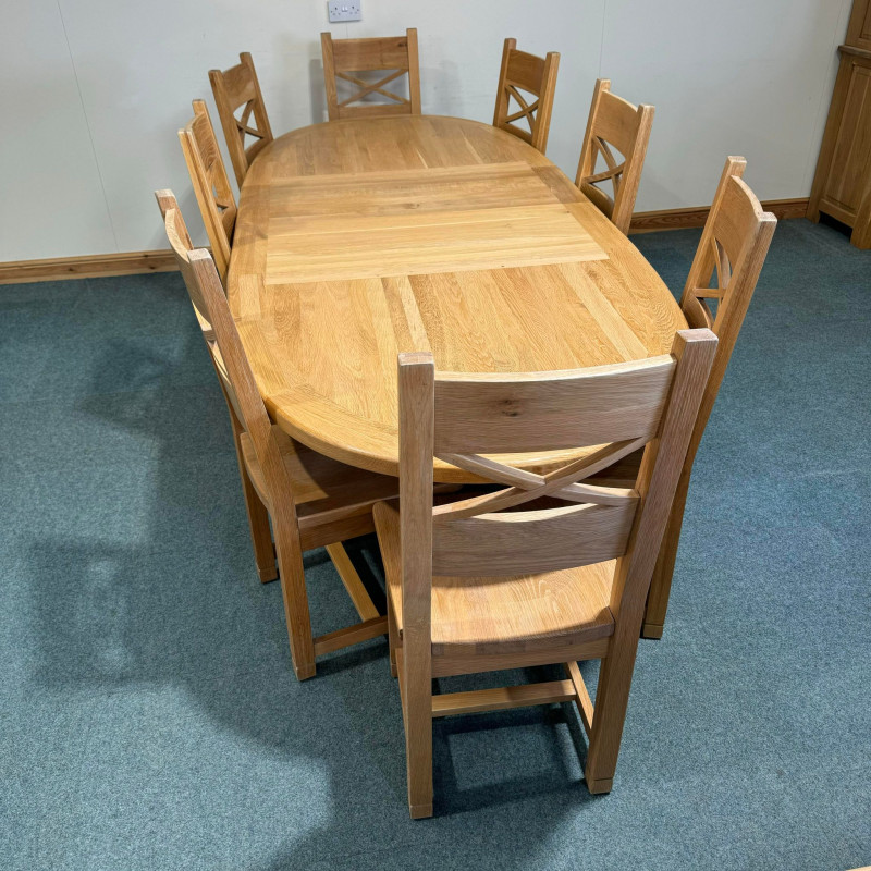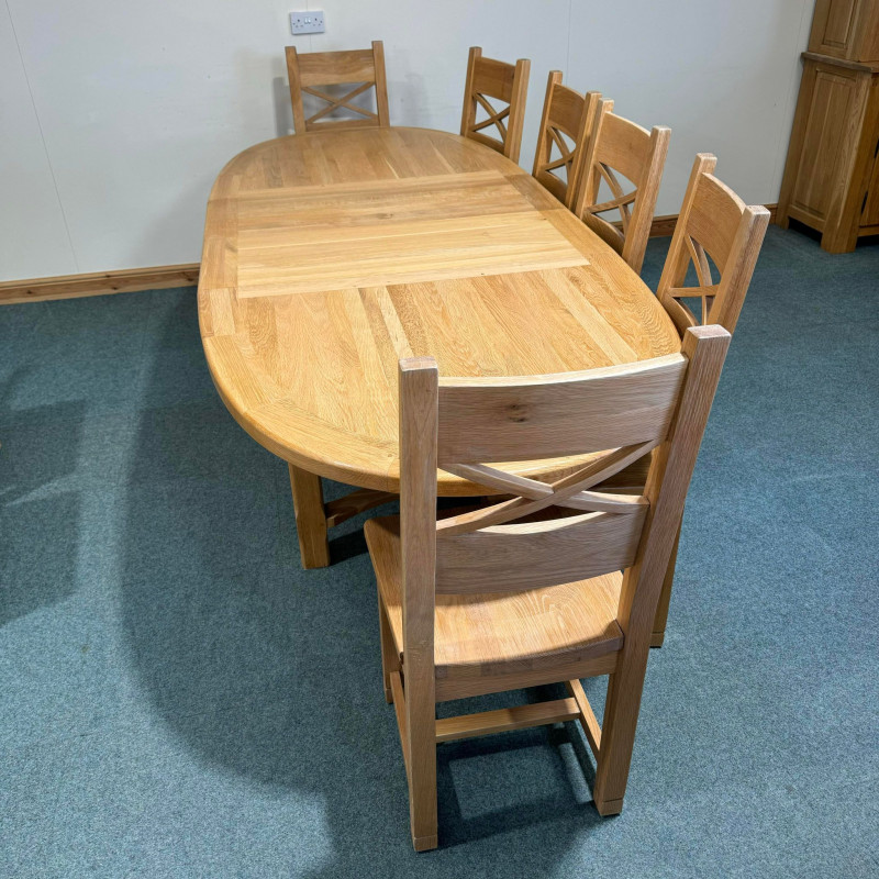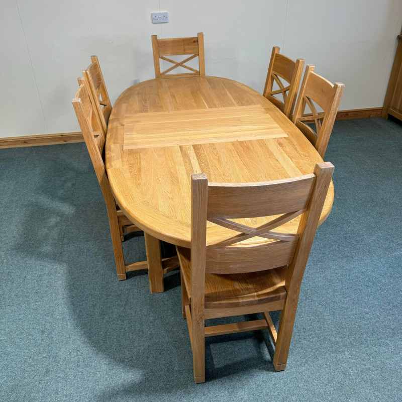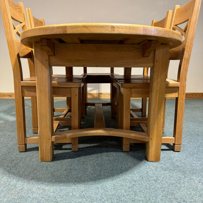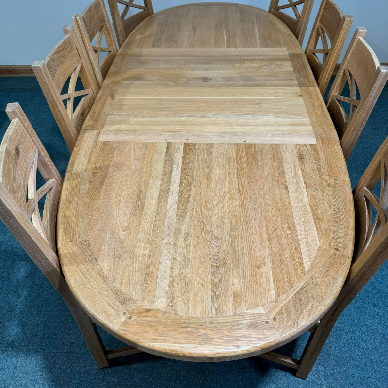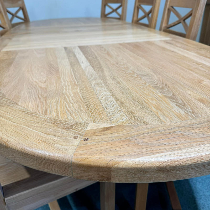 On this table and the chairs we fully removed the old finish and refinished it with a Honey Briwax.