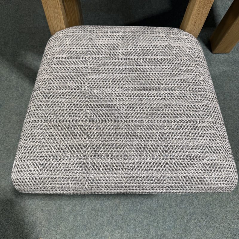 On this table and the chairs we fully removed the old finish and refinished it with a light Briwax. We also recovered the seat pads in the light grey material.