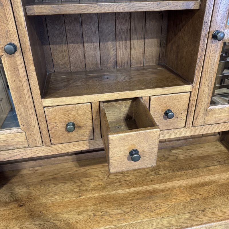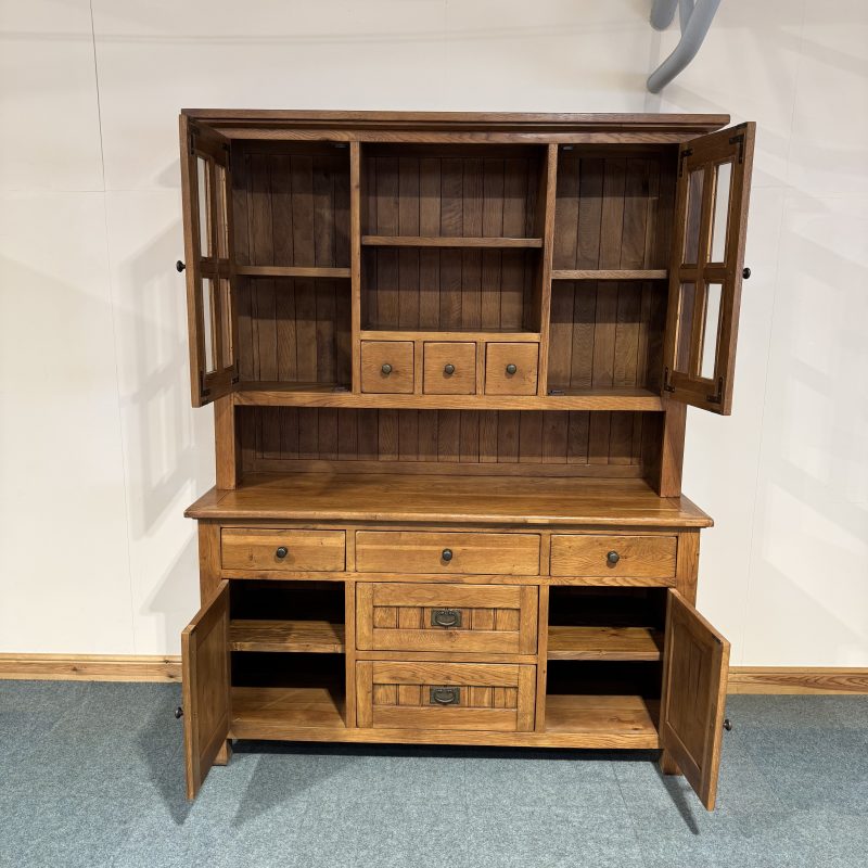 Large, Rustic Solid Oak, Glazed Dresser. (D164)