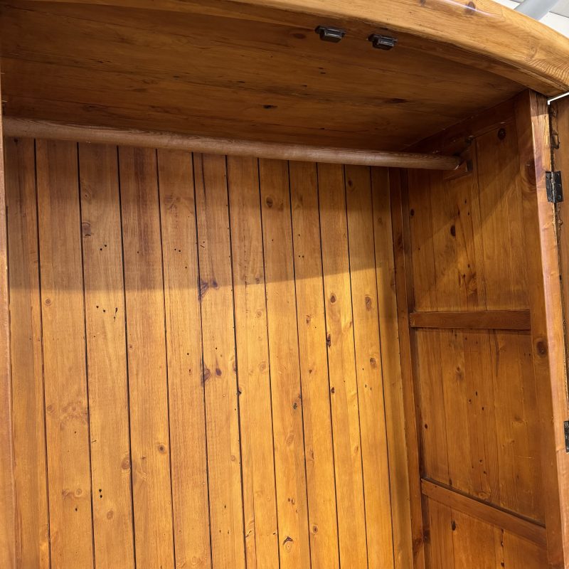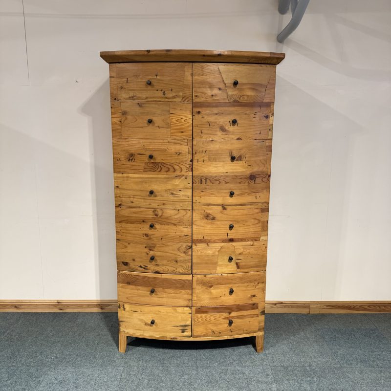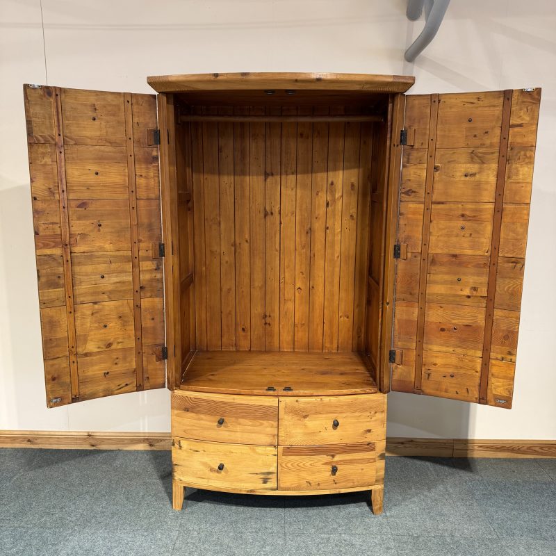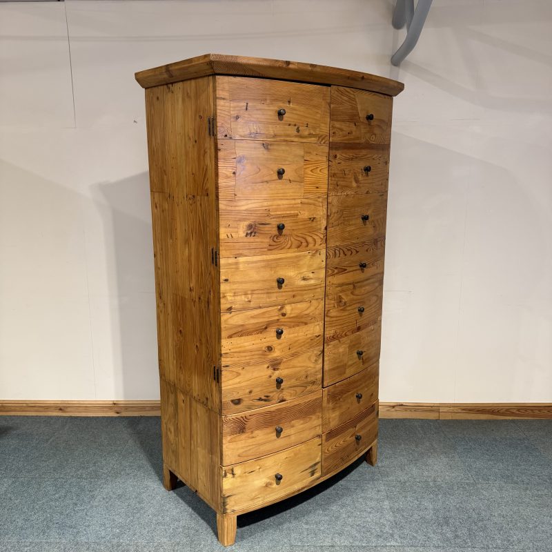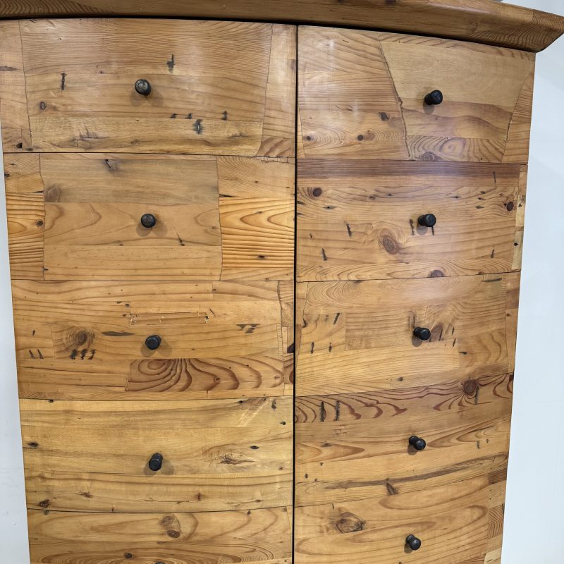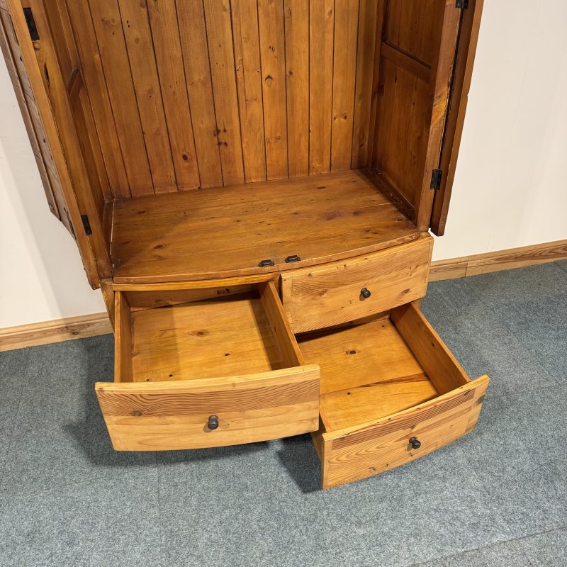 This large, pine double wardrobe is sort of a reclaimed feel and build. The large doors are disguised as drawers and the wardrobe also features 4 actual drawers at the bottom.
