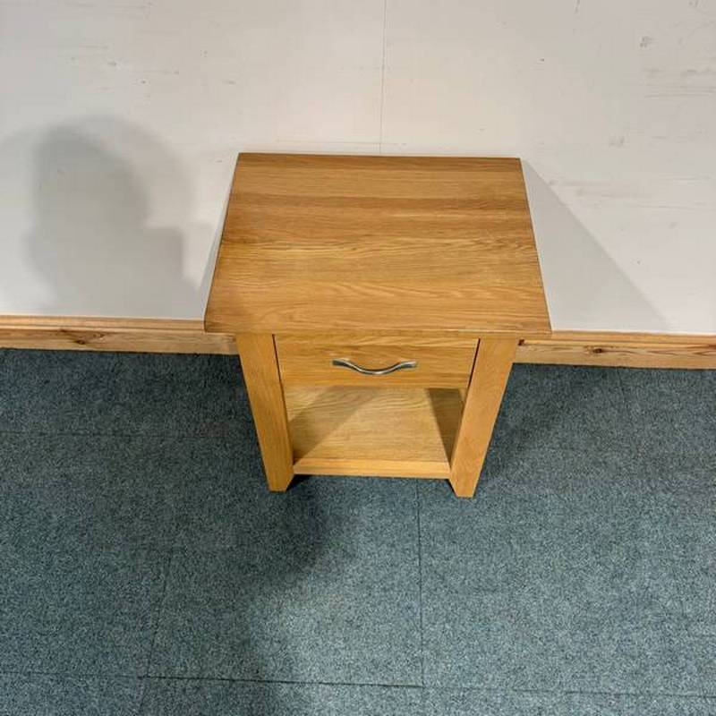This medium sized, solid oak bedside has a good sized drawer with some shelf space below.