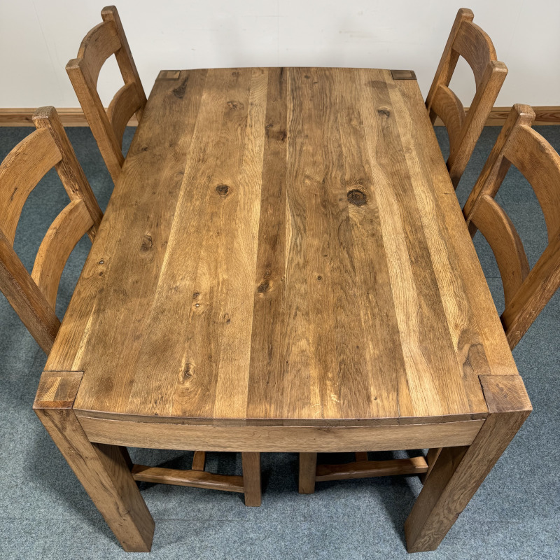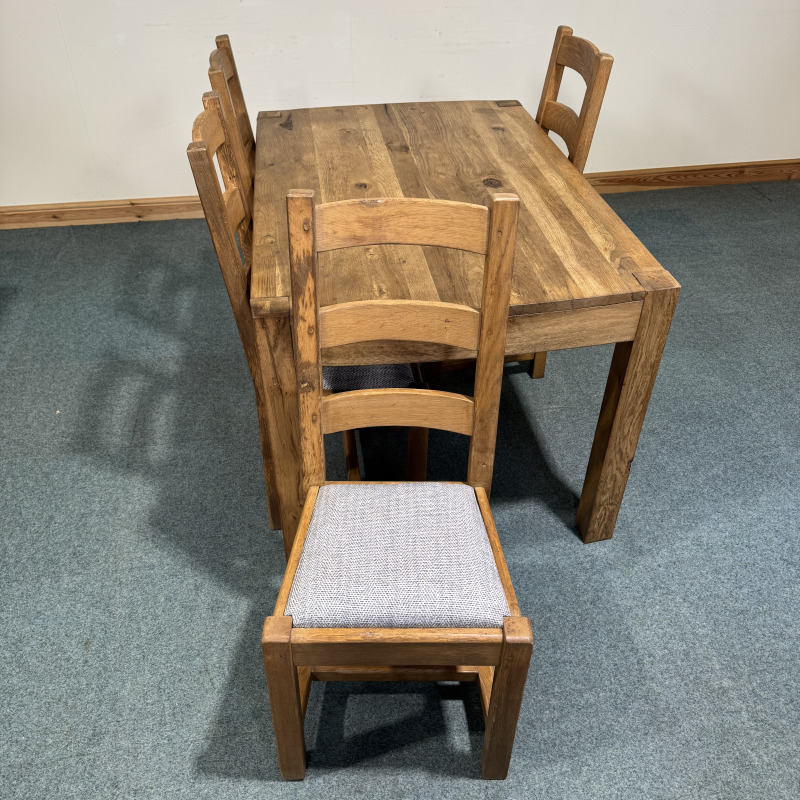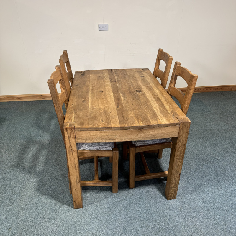 (TC340) Medium Sized, Rustic, Oak, Fixed Table and 4 Chairs.