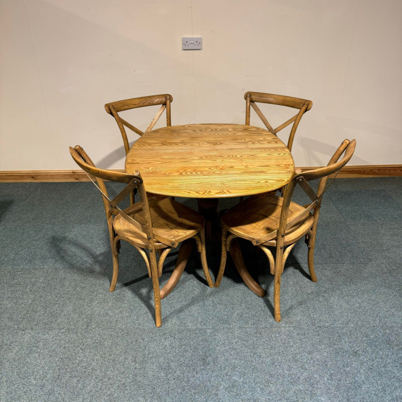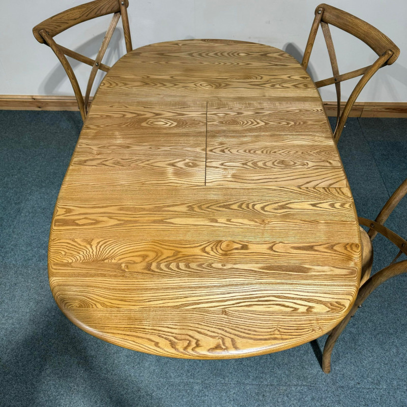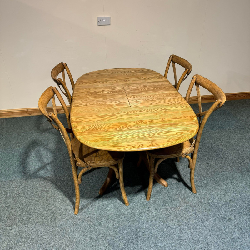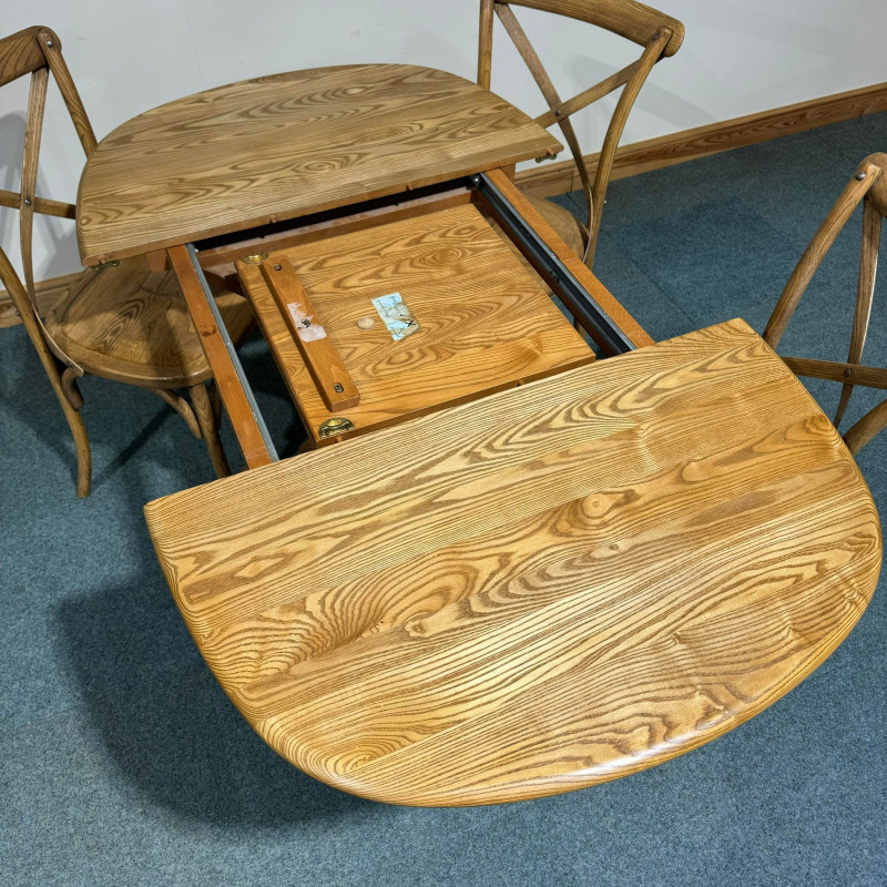 (TC299) Small, Solid Elm, Ercol, 1 Leaf Extending Pedestal Table and 4 Chairs.