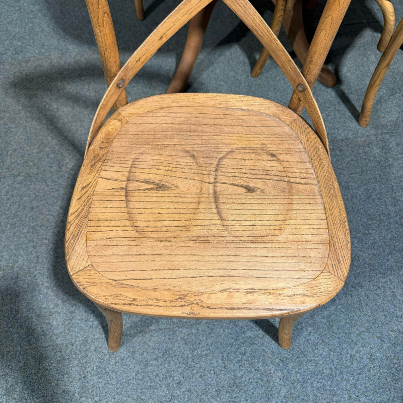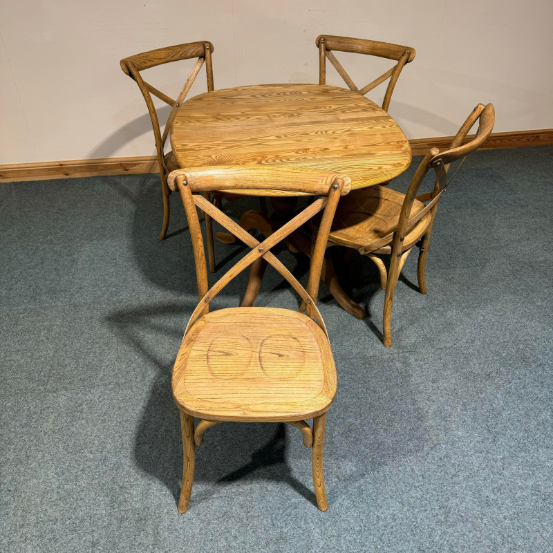 On this table and the chairs we fully removed the old finish and refinished with a light Briwax.