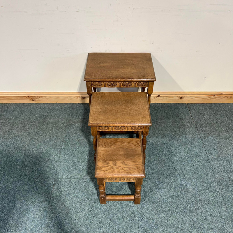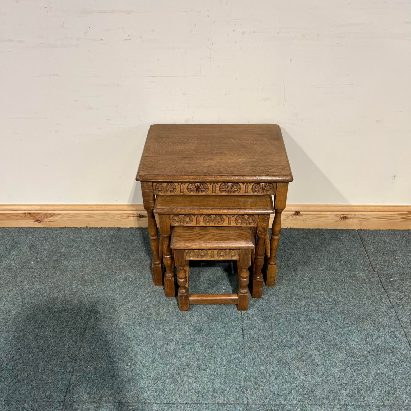 Small, Carved Solid Oak, Nest of 3 Tables. (N106)