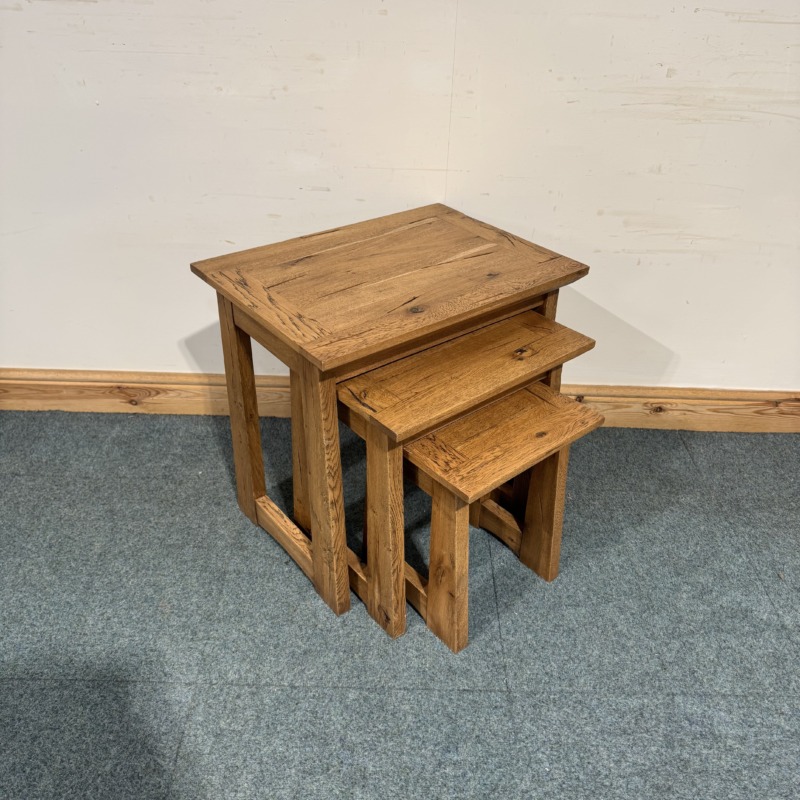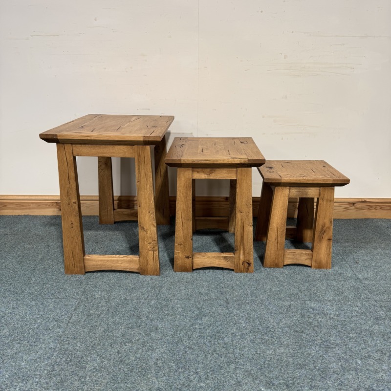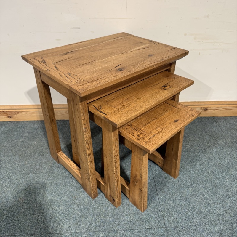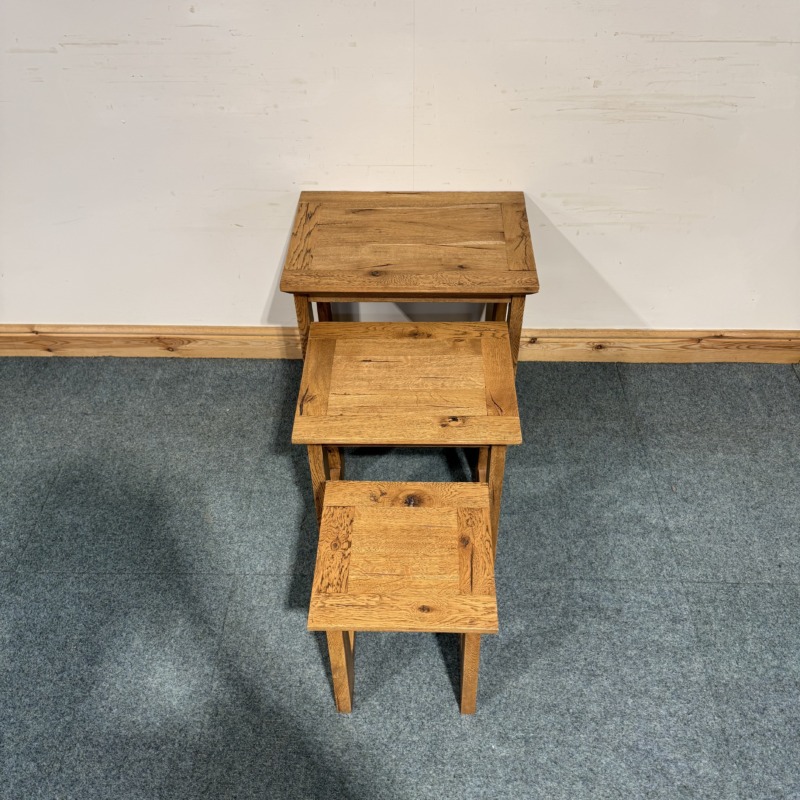 This small nest of 3 tables is exceptionally well made and is completely solid oak throughout. Very useful to get out for little side tables on occasions and then neatly put away when not needed.