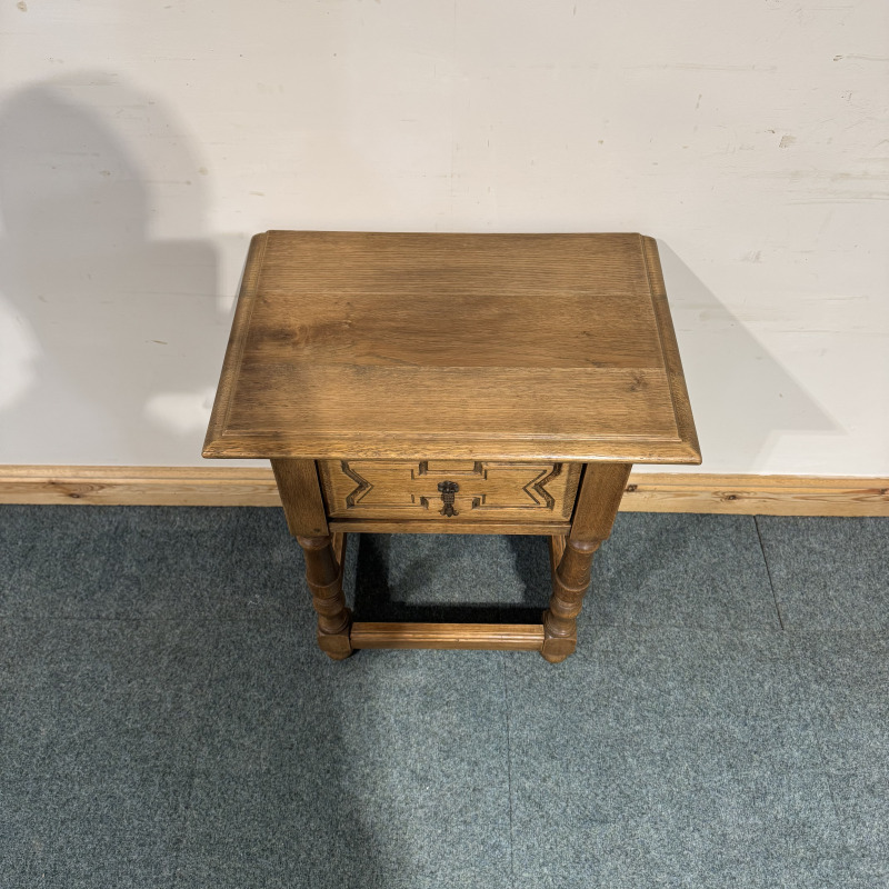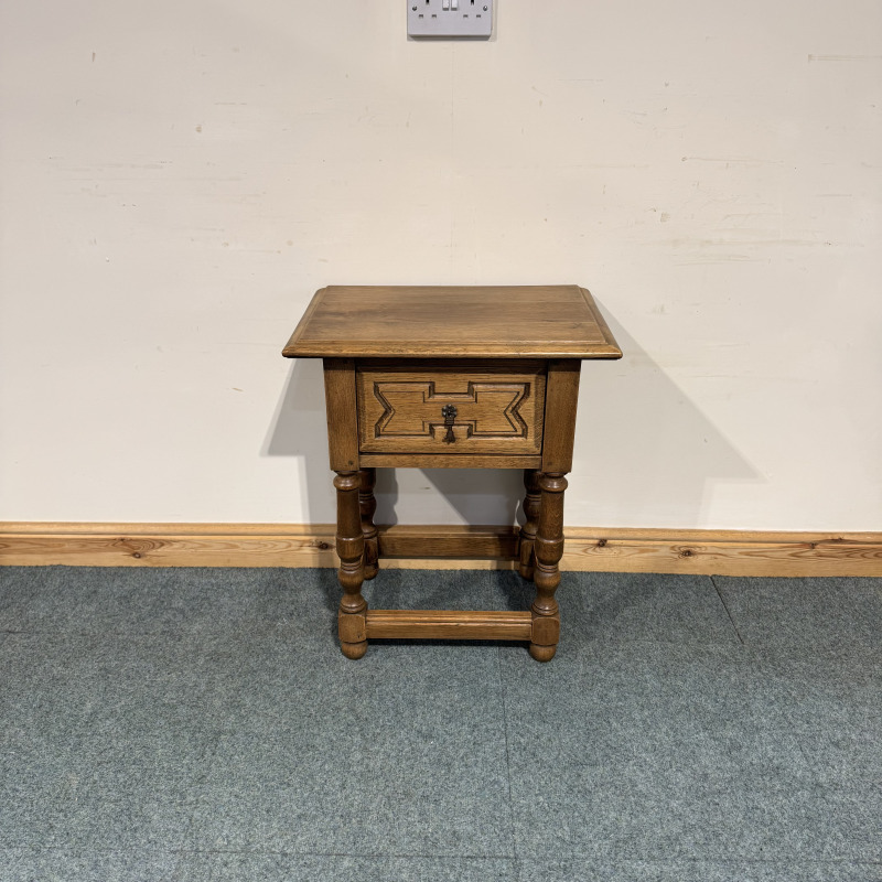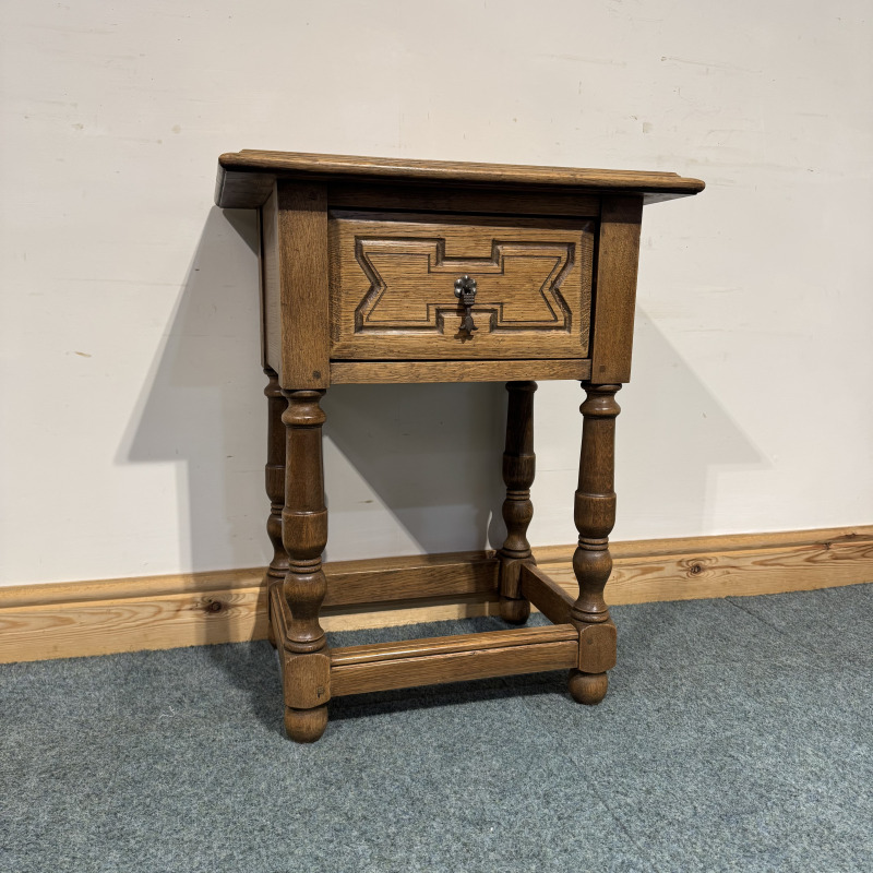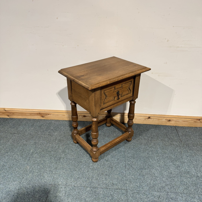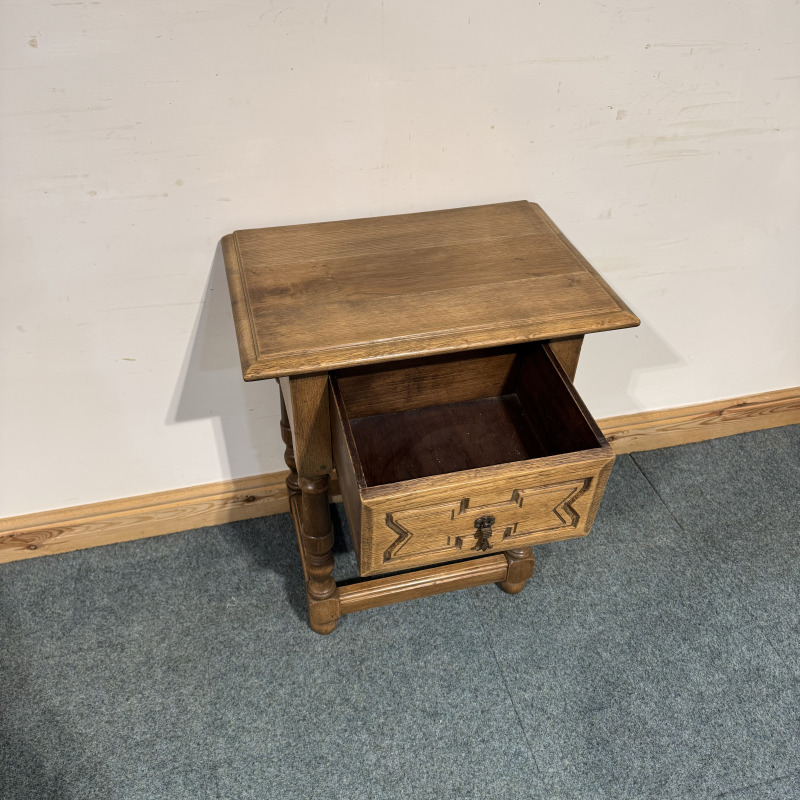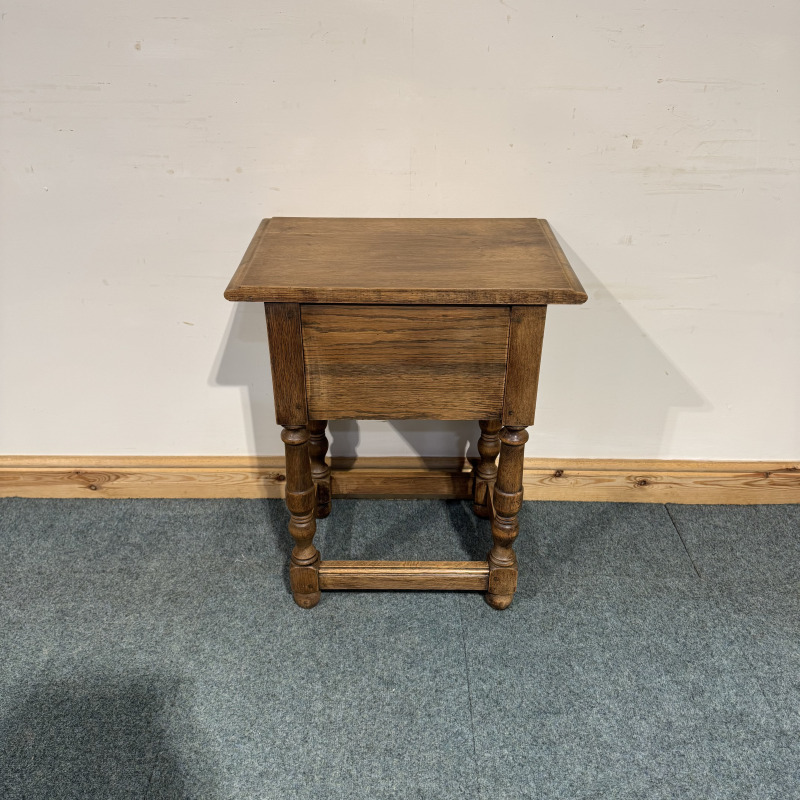 This side table is made exceptionally well and is one of the smallest side tables we have in. It features a good sized drawer and pedestal legs.