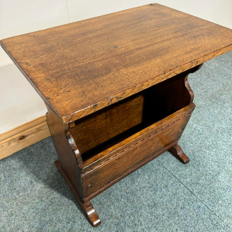 This magazine holder is a Titchmarsh & Goodwin who are a prestigious British furniture maker renowned for their handcrafted, traditional designs, particularly in solid oak. They still make this magazine holder today and it’s north of £600!