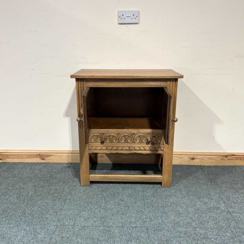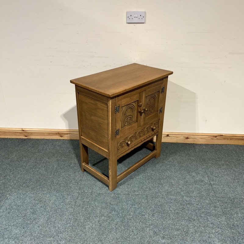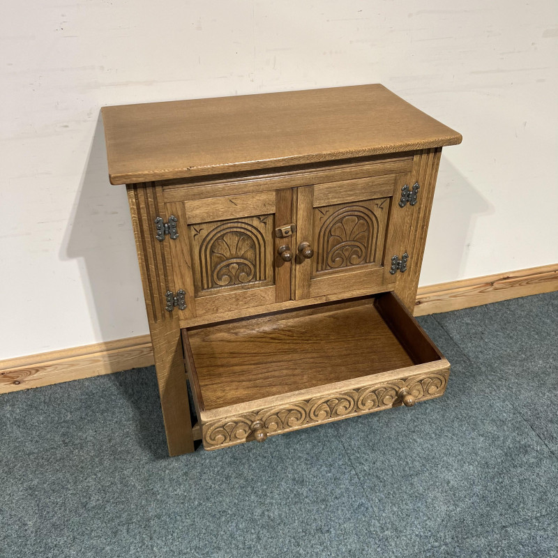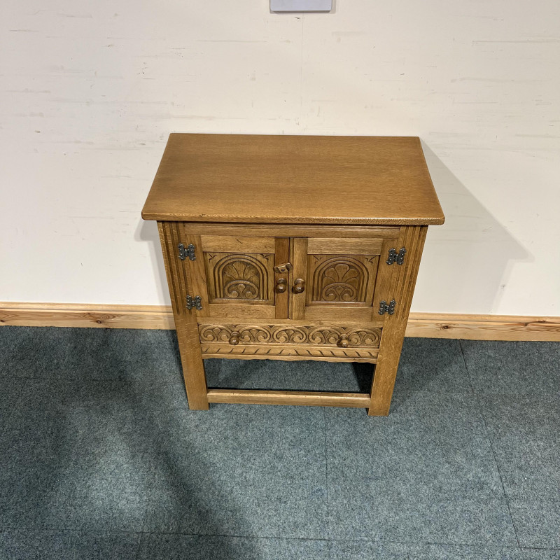 This oak sideboard has beautiful carving across the front. Could be used not only as a small sideboard but even as a telephone table or lamp table perhaps.